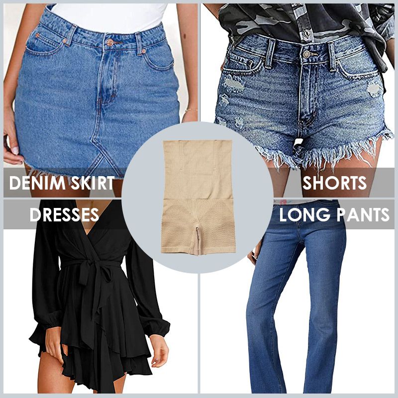 The fabric is smooth and stretchy that can be worn with denim shorts, skirts, dresses, trousers, etc. The highly elastic and long leg design can be used as belly wrap or safety trousers.