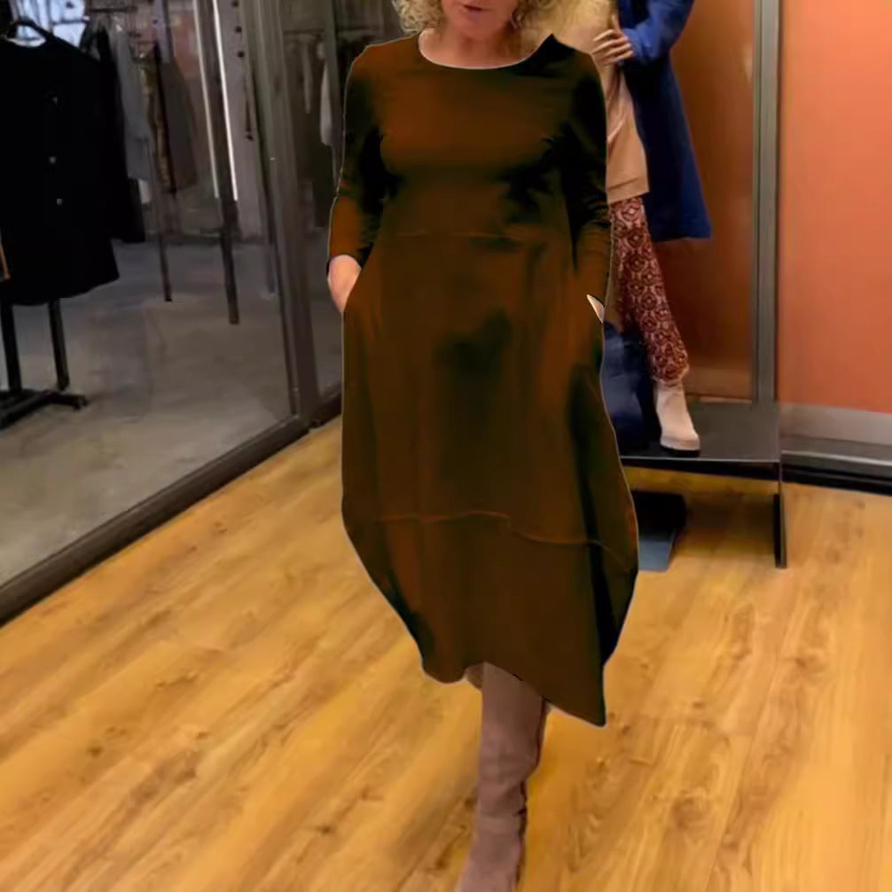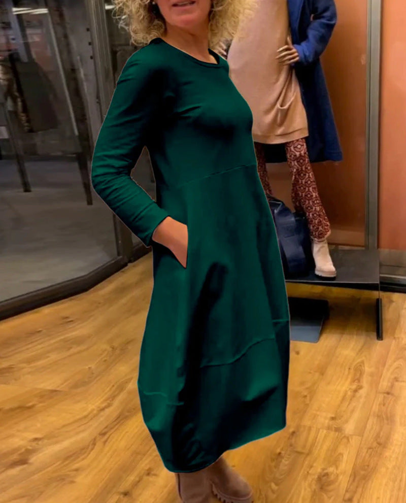 Package content: 1 × Long-sleeved dress with round neck in solid colour