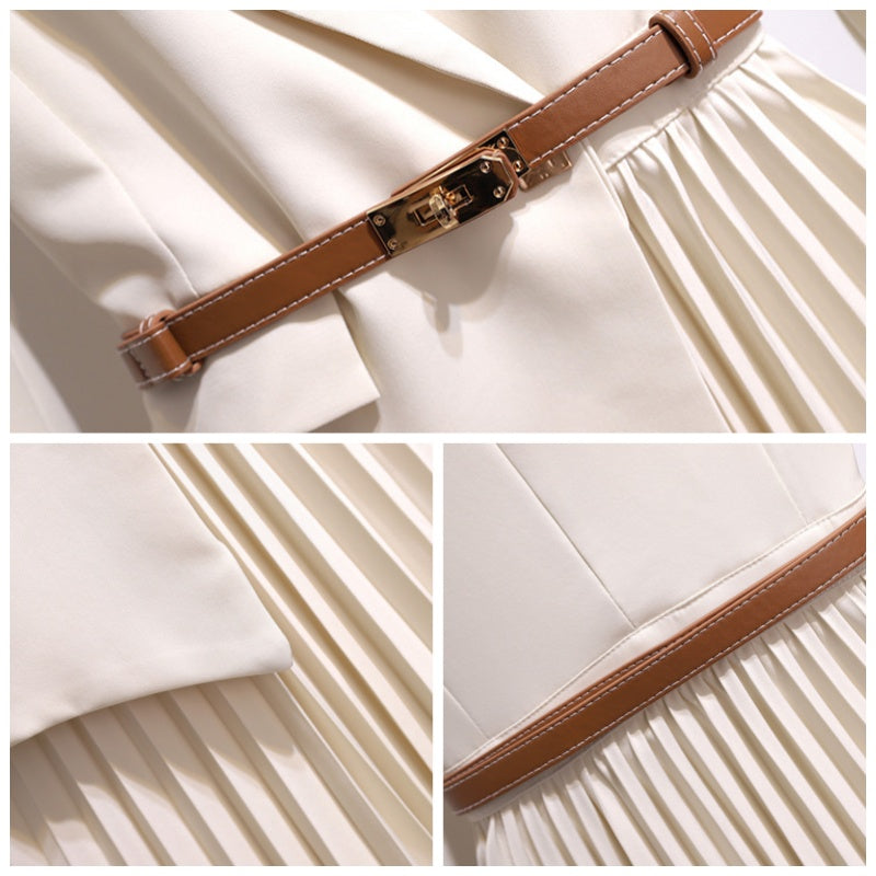 🔥🖤Black Friday Sale🔥Asymmetrical Patchwork Pleated Blazer Dress with Belt