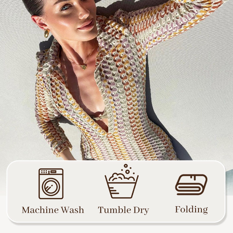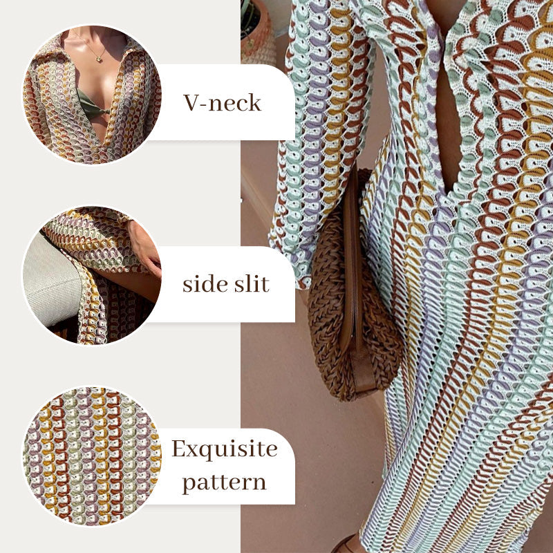 ELEGANT V-NECK DESIGN: Featuring a deep V-neckline, this dress offers a flattering silhouette. The delicate crochet hook at the chest allows for an optional keyhole design, adding a touch of sophistication.