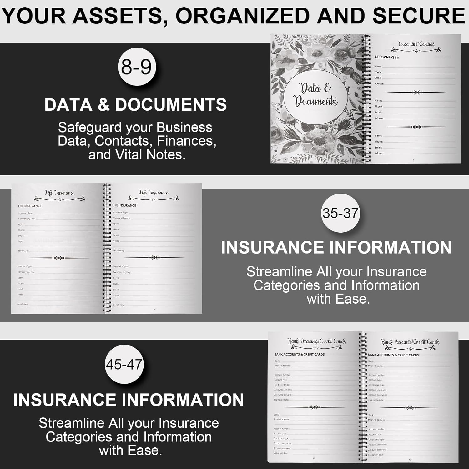 Keep all your important information in one place—dependents, beneficiaries, pets, insurance, accounts, passwords, and more. Each section is clearly organized to ensure nothing is overlooked when it comes to your final wishes.
