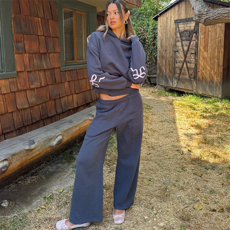 ELEGANT BOW-TRIM DESIGN: Subtle bow accents on the sleeves of the hoodie and the cuffs of the wide-leg sweatpants create a chic, cute touch that elevates your casual look.