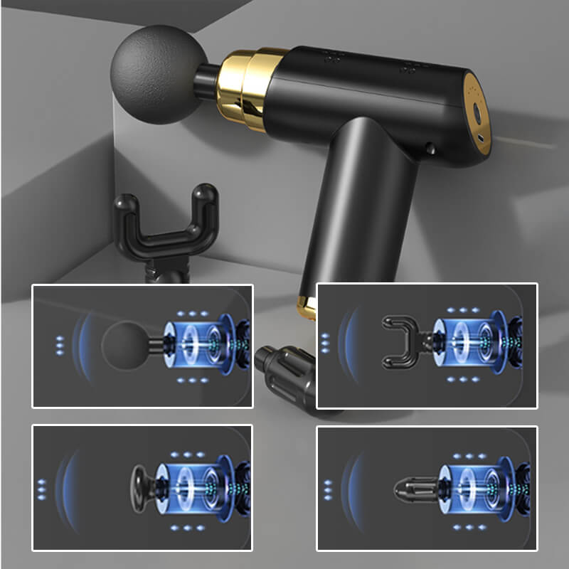 Interchangeable heads in 4 shapes to target specific muscle groups for faster recovery. Can be widely used on the shoulder and neck, back, legs, soles, and other parts. Silicone skin-friendly massage head is more dirt-resistant than ordinary foam materials. Waterproof and easy to clean. Don't worry about sweating or getting dirty.