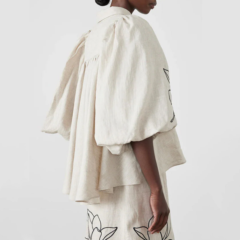 Lola Linen Blend Floral Print Balloon Sleeve Trapeze-style Loose Shirt