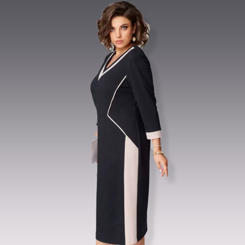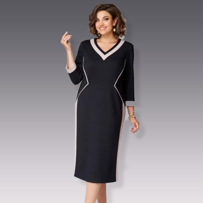 ✨Get 50% off💖3/4 Sleeve V-Neck Color Block Dress