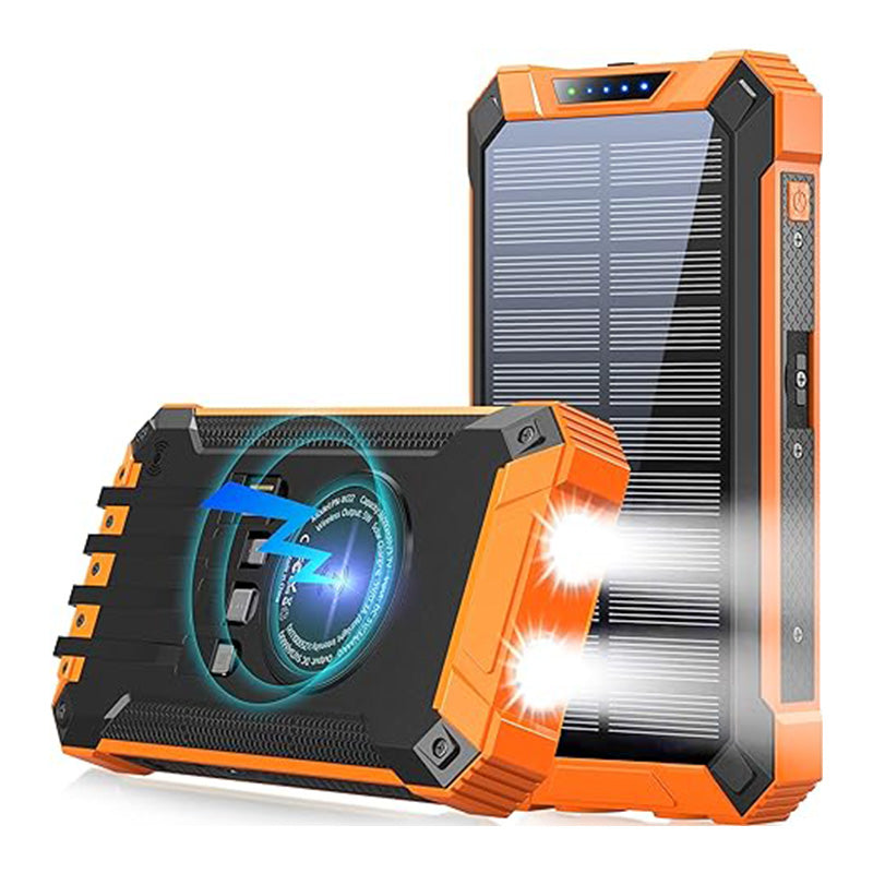 OUTDOOR SOLAR CHARGER: The waterproof sola phone charger made of ABS and TPU material. Wireless phone charger built in smart security chip to monitor temperature, smart protection, solar power bank is equipped with 1.5w solar panel bank which provide provide 12 hours of lighting