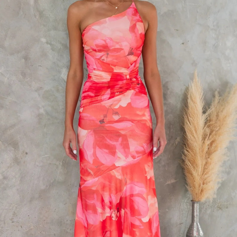 🌸Spring Specials🌸Flowers Print One-shoulder Dress Summer INS Casual Suspender Long Dresses Womens Clothing