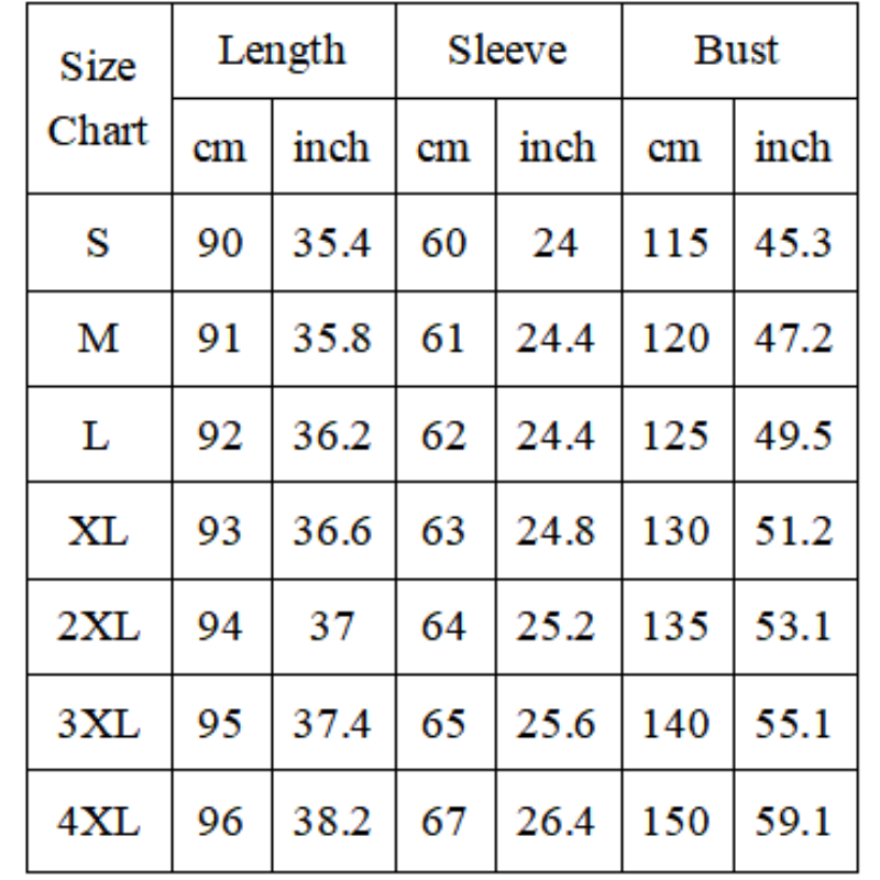 Size:S, M, L, XL, 2XL, 3XL, 4XL