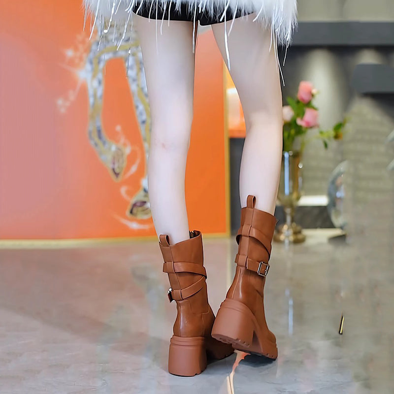 STYLISH PLATFORM : These boots feature a bold platform sole, offering both height and comfort. The thick sole elevates your look while providing excellent support.