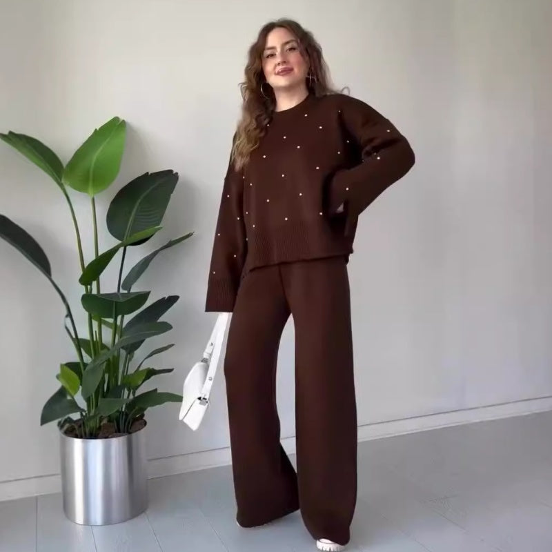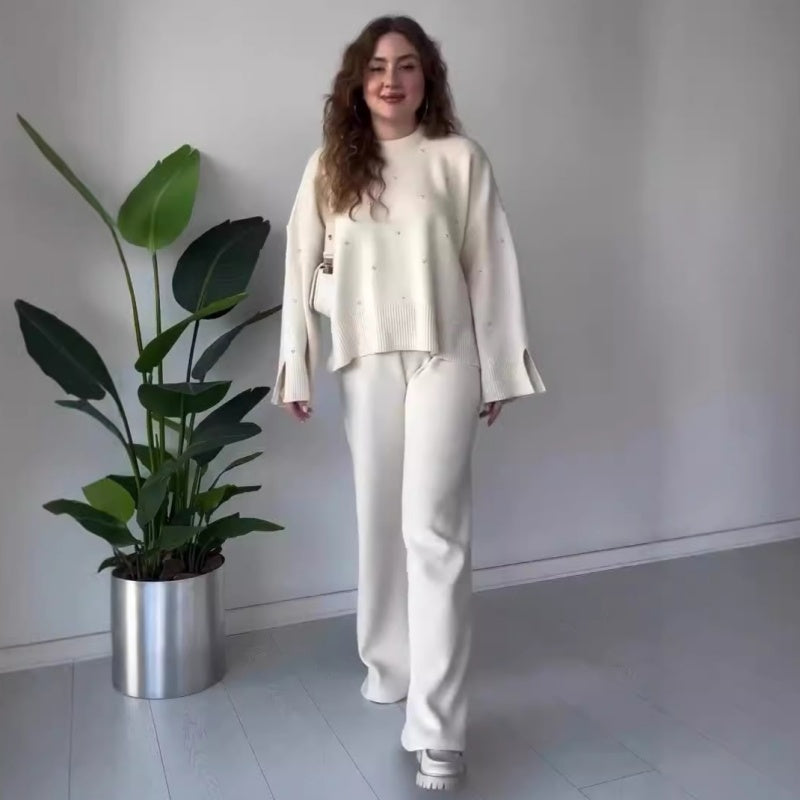 Package Includes: 1*Women's Round Neck Loose Knit Set