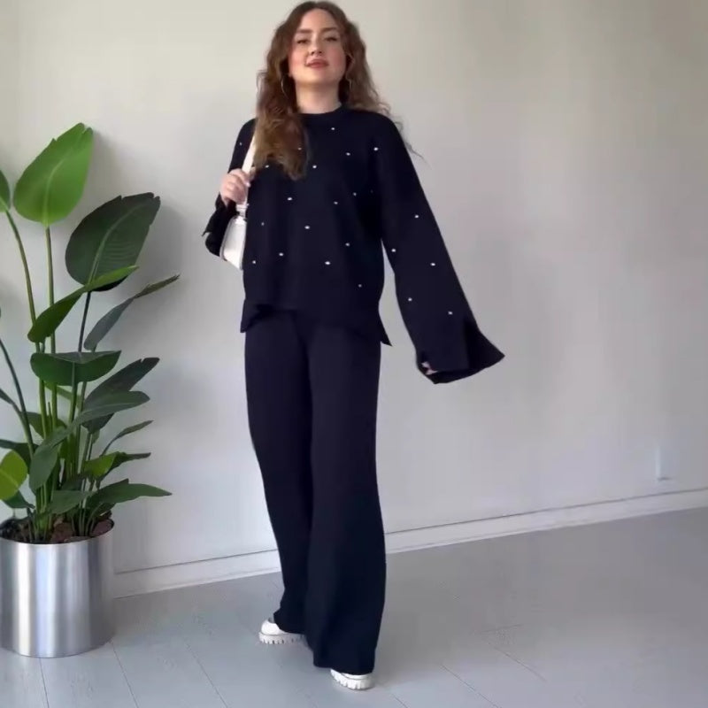 🔥🖤Black Friday Sale:50% OFF🔥Women's Round Neck Loose Knit Set