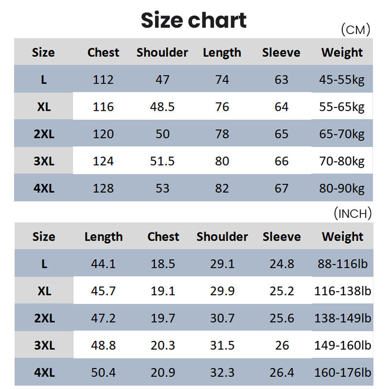 Size: L,XL,2XL,3XL,4XL